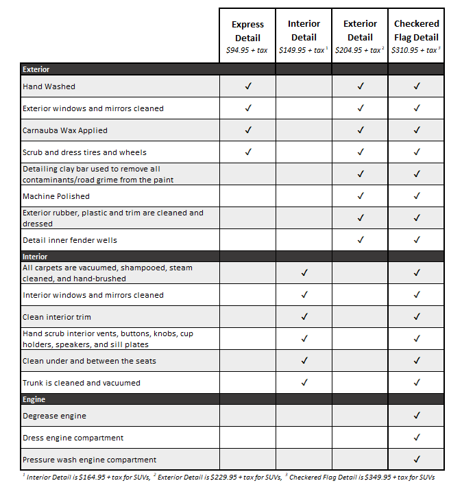 $149.95 + tax for cars, $164.95 + tax for SUVs